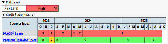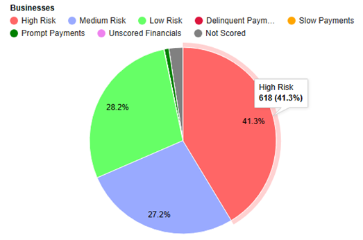 This High Risk group is comprised of companies with above average risk of bankruptcy or delinquency across our proprietary financial risk analytics, including our 96%-accurate FRISK® Score and 80%-accurate PAYCE® Score.