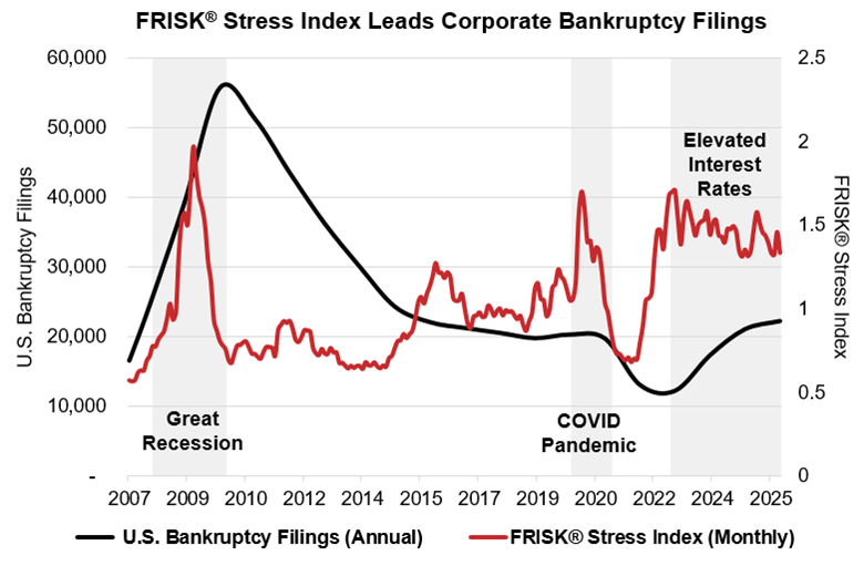 Based on this trend in the FRISK® Stress Index, we anticipate that bankruptcy filings will remain elevated over the next 12 months. Our clients also use this tool on their portfolios to better understand their unique risk exposure.